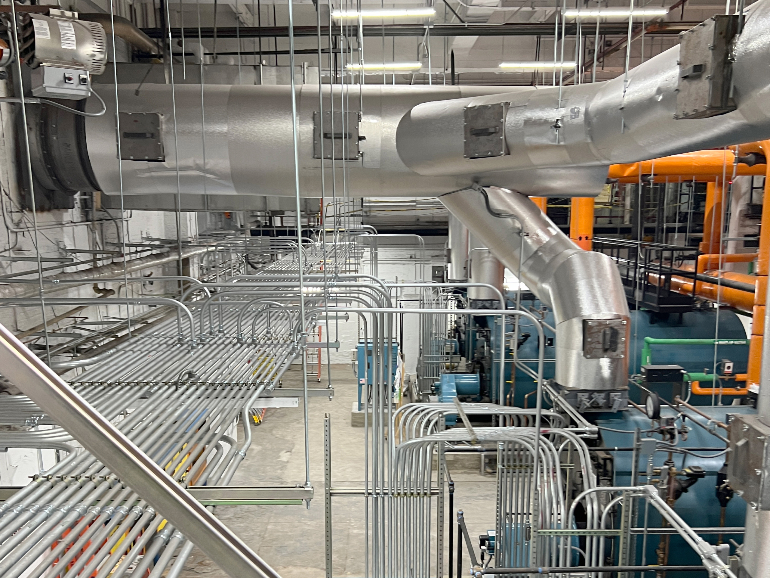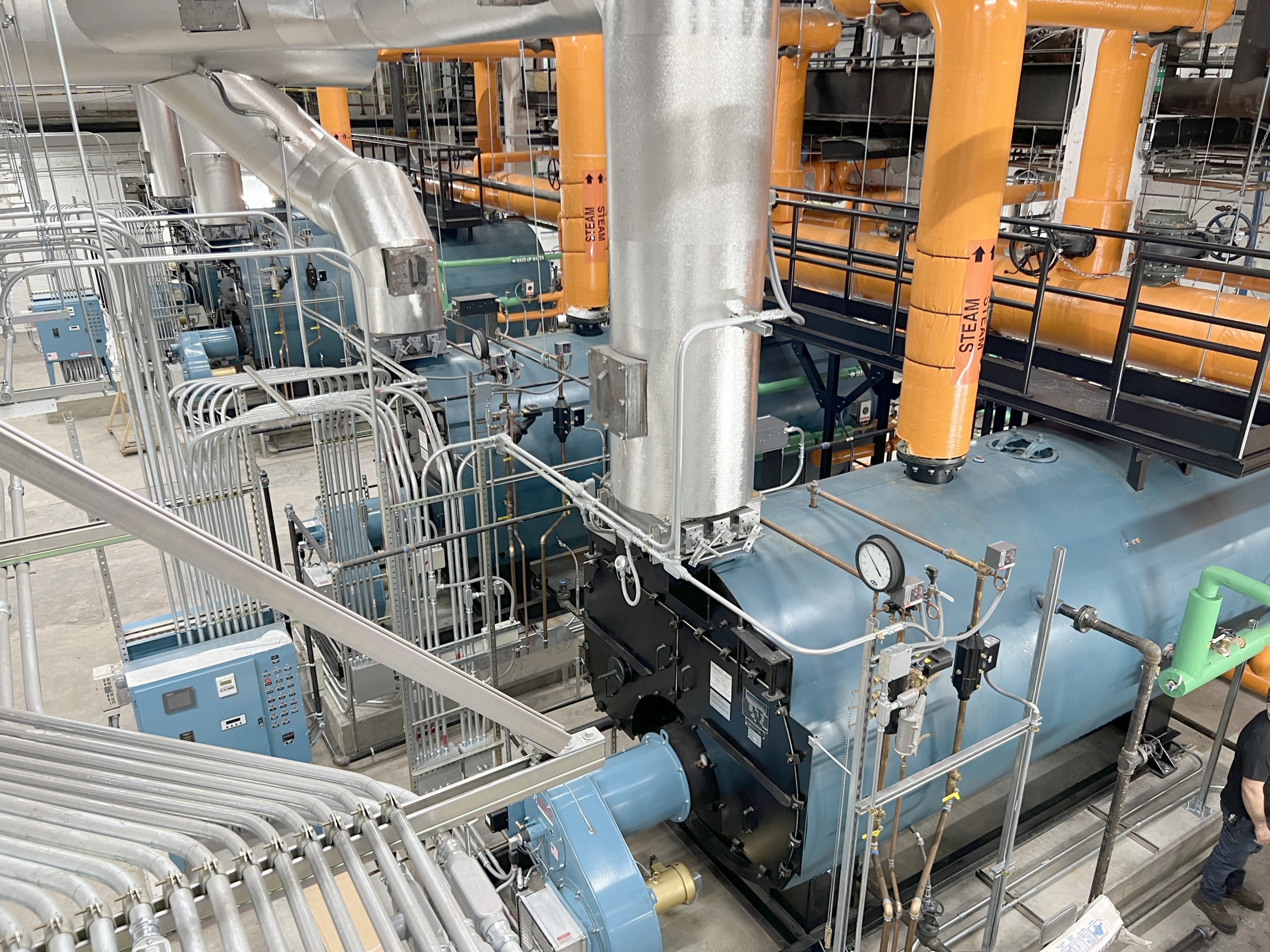 We engineered and oversaw the complete replacement of the aging infrastructure with three new 400 HP, low-pressure steam, field-erected steel fire tube boilers. Our team managed the technical conversion of the facility from high-pressure to low-pressure steam and the transition from No. 6 fuel oil to natural gas. Through the construction phase, we monitored the demolition of fuel oil storage tanks and the installation of critical systems, including vacuum condensate recovery units, blow-down separators, breeching, chimney liners, and updated mechanical room lighting.
